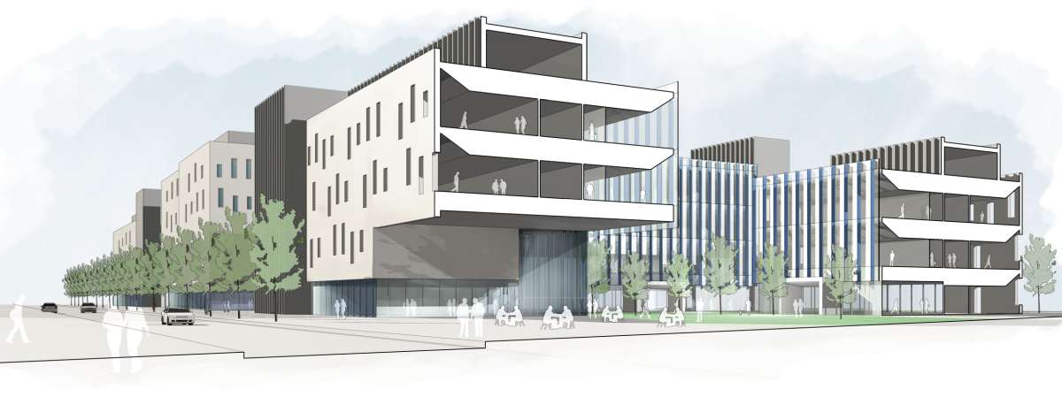 A feasibility study project with NBBJ in London to develop prototype designs for the buildings within the Cambridge Biomedical Campus adjacent to Addenbrooke’s Hospital in Cambridge, UK.