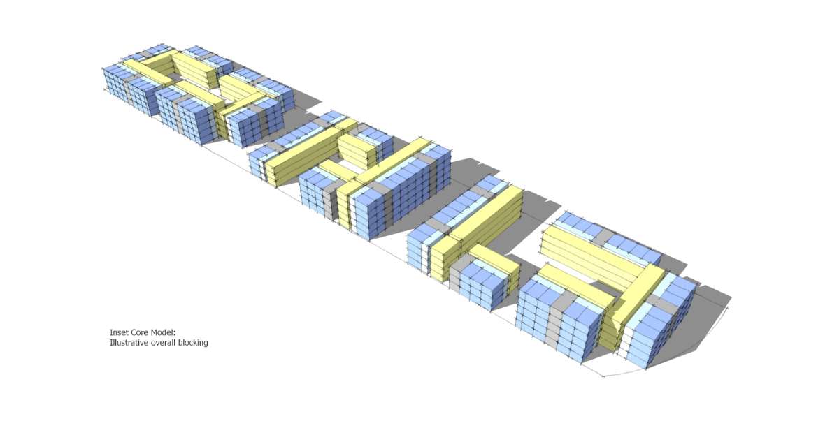 I worked as the main architectural designer on the project, developing the concept designs and presentation visuals guided by two senior architects. Our concept was to create a substantial facade along the main boulevards defined in the masterplan, but to offer the intimacy of smaller scale courtyards within each building.